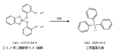 1.通過(guò)三(1,2-苯二醇酸根-O,O'')鍺酸二鉀合成三苯基氯化鍺,收率約69%;