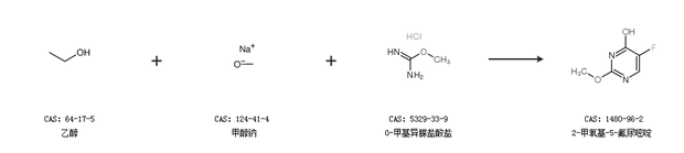 1.通過乙醇、甲醇鈉和O-甲基異脲鹽酸鹽合成2-甲氧基-5-氟尿嘧啶