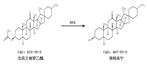 1.通過龍舌蘭皂苷乙酯合成海柯吉寧,收率約95%;
