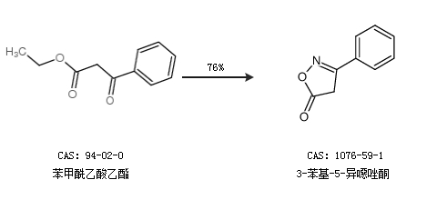 2.通過苯甲酰乙酸甲酯合成3-苯基-5-異噁唑酮,收率約40%;