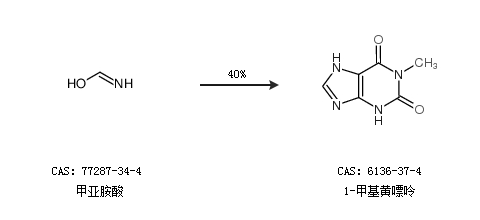 2.通過甲亞胺酸合成1-甲基黃嘌呤,收率約40%;