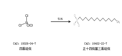 1.通過四氯硅烷合成正十四烷基三氯硅烷,收率約51%;