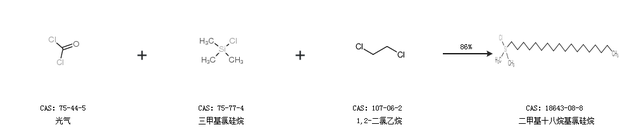 1.通過光氣、三甲基氯硅烷和1,2-二氯乙烷合成二甲基十八烷基氯硅烷,收率約86%;