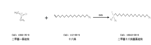 2.通過二甲基一氯硅烷和十八烯合成二甲基十八烷基氯硅烷,收率約84%;