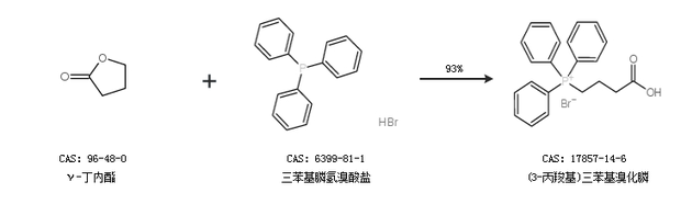 2.通過(guò)γ-丁內(nèi)酯和三苯基膦氫溴酸鹽合成(3-丙羧基)三苯基溴化膦,收率約93%;