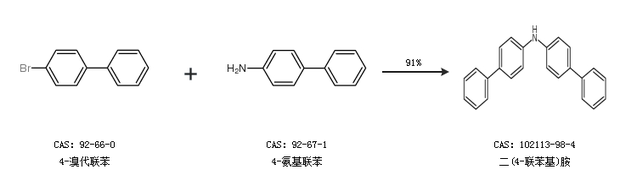 1.通過(guò)4-溴代聯(lián)苯和4-氨基聯(lián)苯合成二(4-聯(lián)苯基)胺,收率約91%;