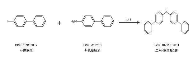 2.通過(guò)4-碘聯(lián)苯和4-氨基聯(lián)苯合成二(4-聯(lián)苯基)胺,收率約14%;