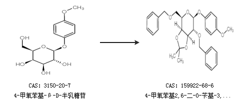 2.通過4-甲氧苯基-β-D-半乳糖苷合成4-甲氧苯基2,6-二-O-芐基-3,4-O-異亞丙基-β-D-吡喃半乳糖苷