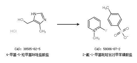 1.通過4-甲基-5-羥甲基咪唑鹽酸鹽合成2-氟-1-甲基吡啶翁對(duì)甲苯磺酸鹽