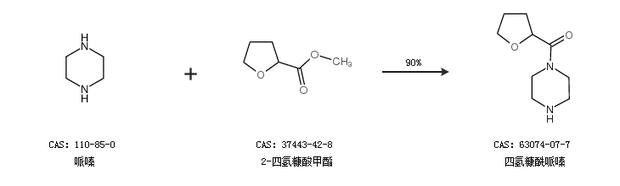 2.通過哌嗪和2-四氫糠酸甲酯合成四氫糠酰哌嗪,收率約90%;