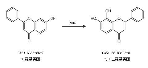 1.通過(guò)7-羥基黃酮合成7,8-二羥基黃酮,收率約99%;