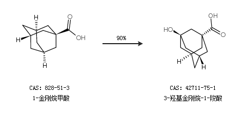2.通過1-金剛烷甲酸合成3-羥基金剛烷-1-羧酸,收率約90%;