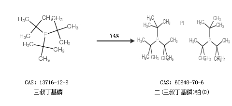 2.通過三叔丁基膦合成二(三叔丁基膦)鉑(0),收率約74%;