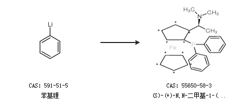 1.通過苯基鋰合成(S)-(+)-N,N-二甲基-1-(2-聯(lián)苯膦基)二茂鐵乙胺