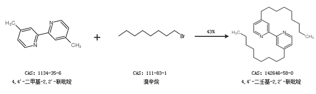 1.通過4,4''-二甲基-2,2''-聯(lián)吡啶和溴辛烷合成4,4''-二壬基-2,2''-聯(lián)吡啶,收率約43%;