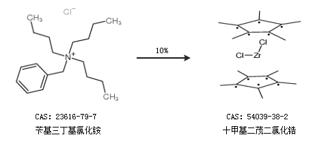 1.通過(guò)芐基三丁基氯化銨合成十甲基二茂二氯化鋯,收率約10%;