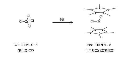 2.通過(guò)氯化鋯(IV)合成十甲基二茂二氯化鋯,收率約54%;