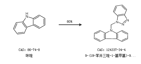 2.通過(guò)咔唑合成9-(1H-苯并三唑-1-基甲基)-9H-咔唑,收率約80%;