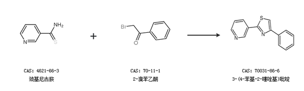 2.通過巰基尼古胺和2-溴苯乙酮合成3-(4-苯基-2-噻唑基)吡啶