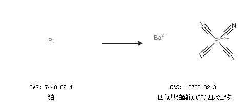 中文別名 鋇 四氰鉑酸鹽(II) 四水合物,P;鋇四氰鉑酸鹽(II) 四水合物;四氰合鉑(Ⅱ)酸鋇;
