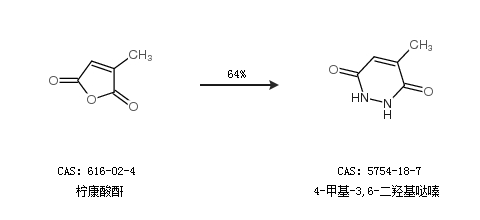 1.通過檸康酸酐合成4-甲基-3,6-二羥基噠嗪,收率約64%;