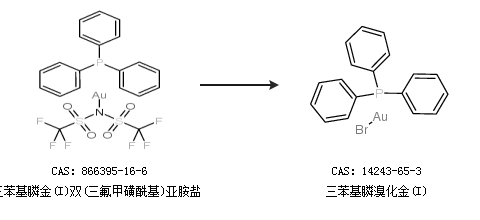 2.通過三苯基膦金(I)雙(三氟甲磺酰基)亞胺鹽合成三苯基膦溴化金(I)
