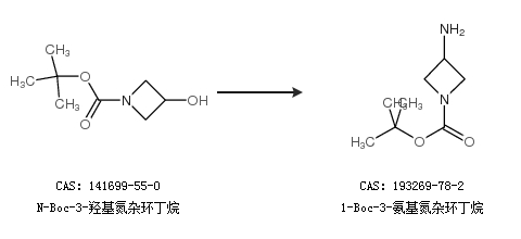 1.通過N-Boc-3-羥基氮雜環(huán)丁烷合成1-Boc-3-氨基氮雜環(huán)丁烷