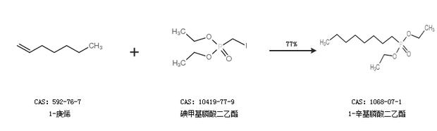 2.通過1-庚烯和碘甲基膦酸二乙酯合成1-辛基膦酸二乙酯,收率約77%;