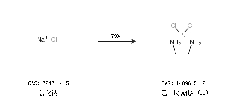 2.通過(guò)氯化鈉合成乙二胺氯化鉑(II),收率約79%;