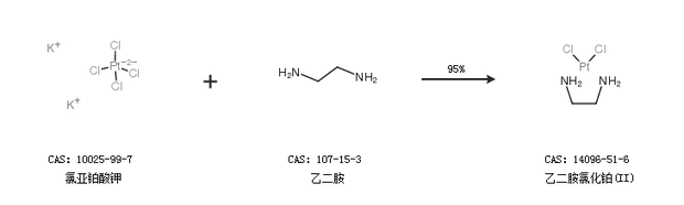 1.通過(guò)氯亞鉑酸鉀和乙二胺合成乙二胺氯化鉑(II),收率約95%;