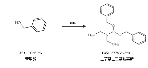 2.通過苯甲醇合成二芐基二乙基胺基膦,收率約89%;