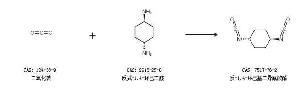 1.通過二氧化碳和反式-1,4-環(huán)己二胺合成反-1,4-環(huán)己基二異氰酸酯