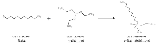 1.通過癸基溴和亞磷酸三乙酯合成1-癸基丁基膦酸二乙酯