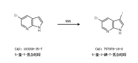 1.通過(guò)5-溴-7-氮雜吲哚合成5-溴-3-碘-7-氮雜吲哚,收率約99%;